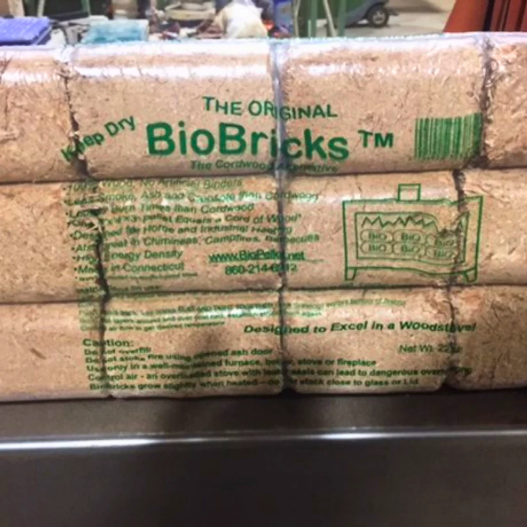 BioBricks are compressed wood bricks made from dried sawdust that are specifically designed to create hot and efficient fires in wood stoves. They can be densely packed into the fire box of a stove which creates a hotter, longer burn and are a less-messy alternative to cordwood. One ton of BioBricks is the equivalent to one cord of firewood in terms of BTU’s. In addition to being used as a stand-alone wood stove fuel, BioBricks are also great for starting fires and can improve the performance of under-seasoned cord wood when burned together.